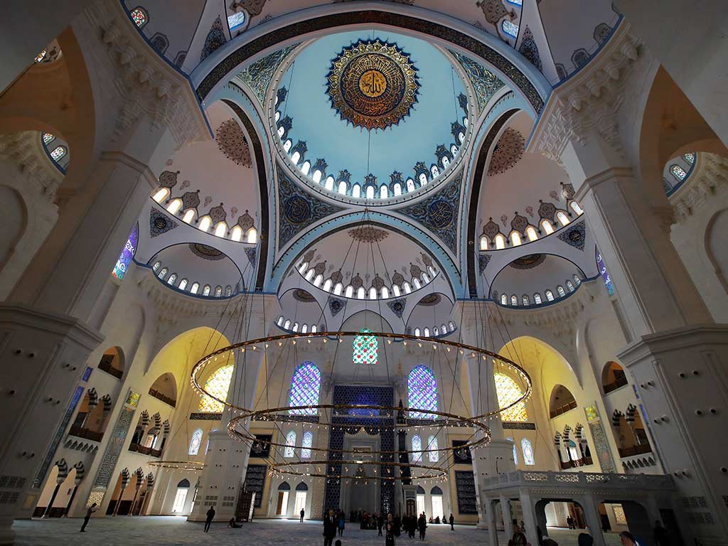 Six minarets (four at 107.1 m), a 72 m-high main dome, and a 34 m diameter—numbers that symbolize Türkiye’s diversity (72 communities), Istanbul’s 34 code, and the 1071 Malazgirt victory.